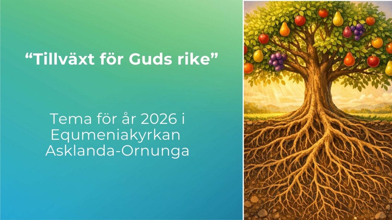 I år blir vi, både som församling och individer, genom vårt årstema uppmanade att på alla sätt försöka utvecklas och växa i våra liv. Det kan till exempel handla om att utvecklas och växa i vår identitet, mognad, tro, kärlek, mod och antal. Guds rike är ett stort, genomgripande tema i Jesu fokus, undervisning och liv. Även vi som församling vill söka detta rike och lära oss mer om vad det innebär.